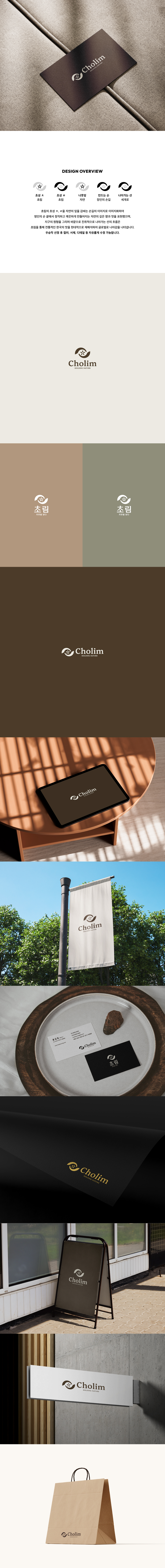 초림의 초성 ㅊ, ㄹ을 자연의 잎을 감싸는 손길의 이미지로 이미지화하여 명인의 손 끝에서 정직하고 깨끗하게 만들어지는 자연의 깊은 향과 맛을 표현했으며,